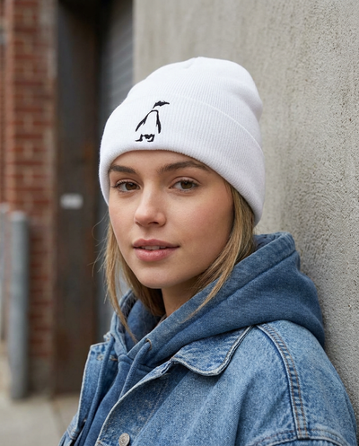 Dancing Penguin Embroidery, Moss Apparel, Beanie