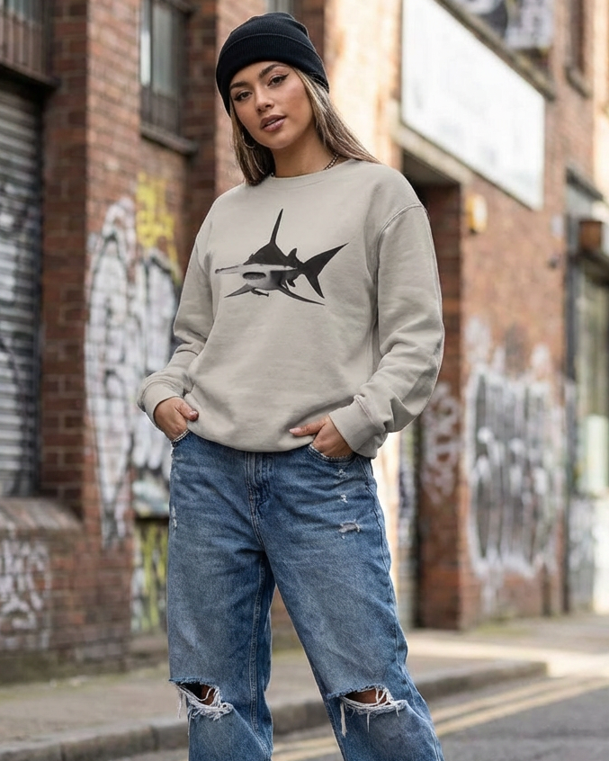 This Crewneck Sweater features a stunning photograph of a hammerhead shark taken in Bimini Bahamas by Robert Moss. It is perfect for shark lovers and can be worn for casual outings, beach trips, or marine-themed events. This high-quality garment is a great conversation starter and a stylish addition to any wardrobe.
