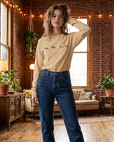 Mule Deer and Barbed Wire Fencing, Wyldlife for Tomorrow, Moss Apparel, Long Sleeve T-Shirt